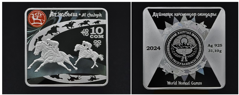 | 2 | Ат чабыш | 10 сом | серебро 925° | 31.1 | 38,61 | proof |