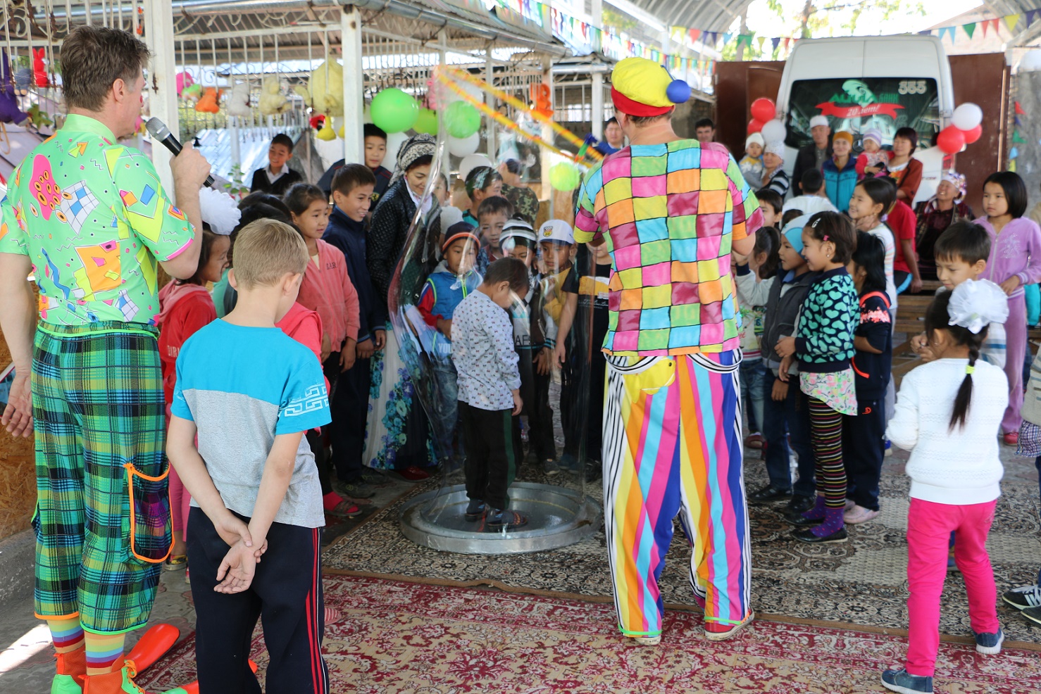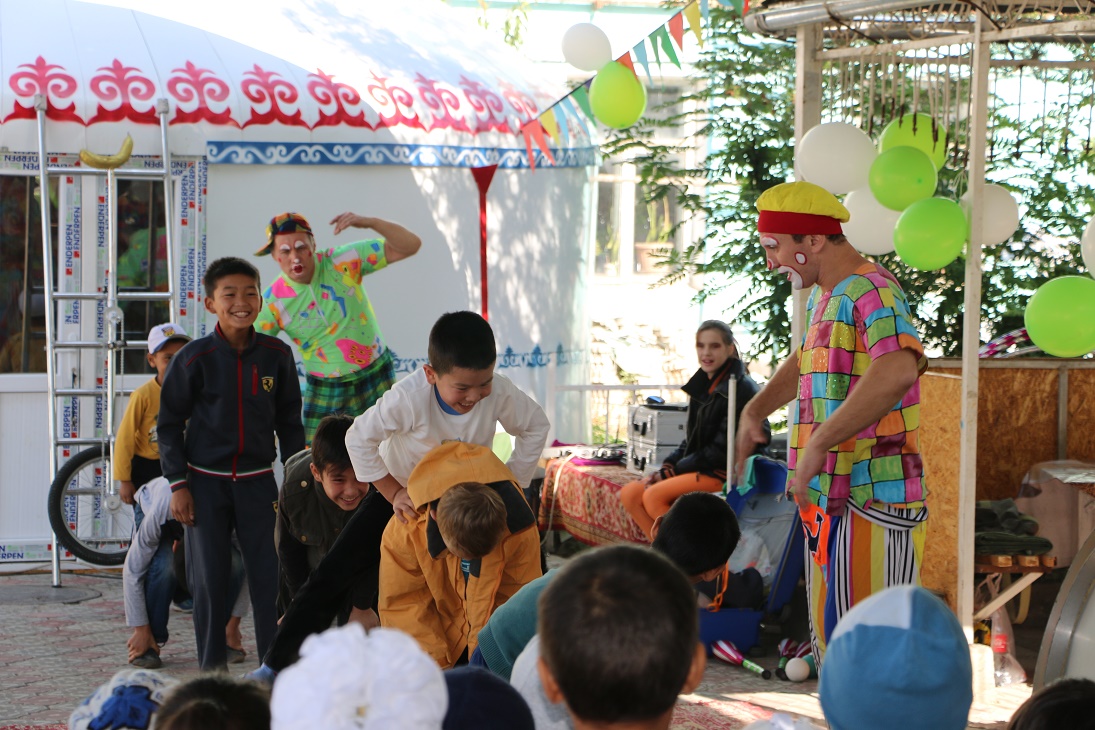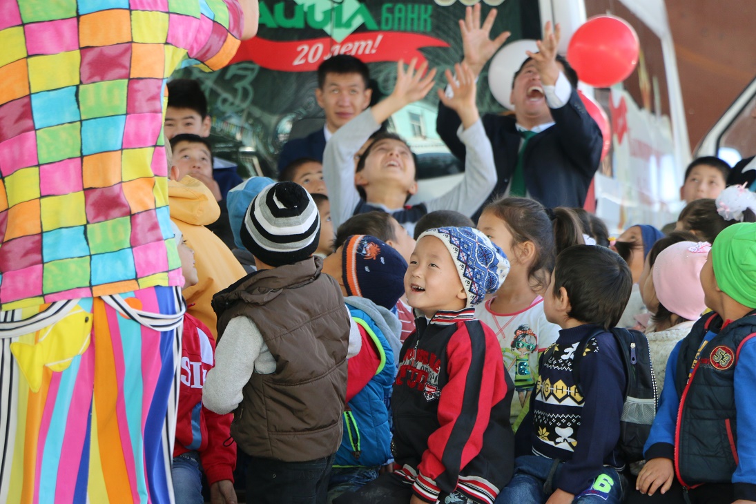 Altyn Uya Children Boarding House Director Mrs.Toktomametova Tamara greeted all and expressed words of thanks to Aiyl Bank management for the holiday for children. It was so touching to see children’s shining eyes and joyful faces. The celebration was very positive! People in Osh Area could watch the event on local TV channel Yntymak.