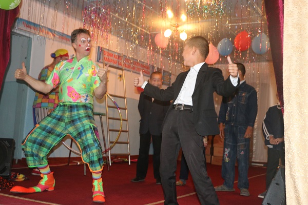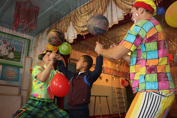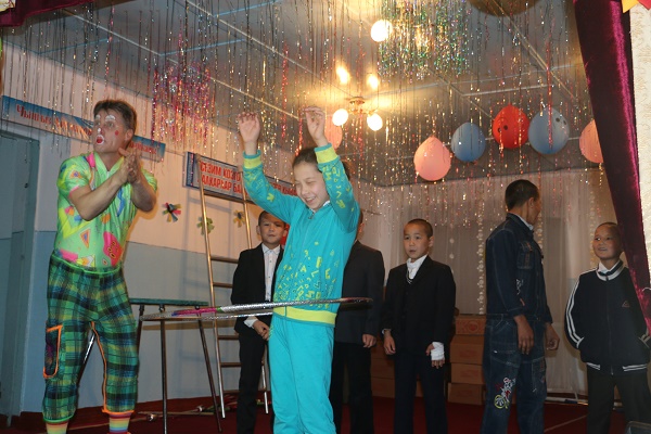 The opening speeches were made by School Director Juraeva R.D., Managing Director of Leylek Branch Majitov A., Sulukta Town Vice-Major Saparkulova M.E. After opening circus artists started a colorful and joyful performance.