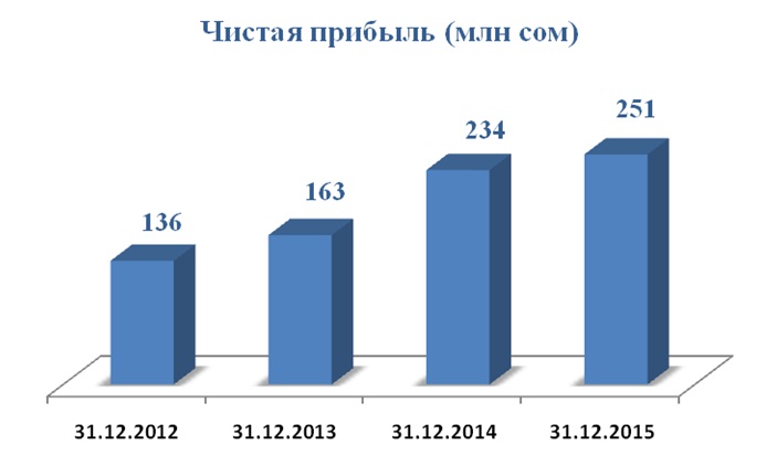 Aiyl Bank has reached significant results for the last years: as of 01.01.2016 Bank assets are 17,2 bln.som and increased more than 1,5 times comparing to similar period of last year. Loan portfolio is 10,2 bln.som and increased more than 1,3 times comparing to similar period of 2015. At the same time loan repayment rate is over 99%.