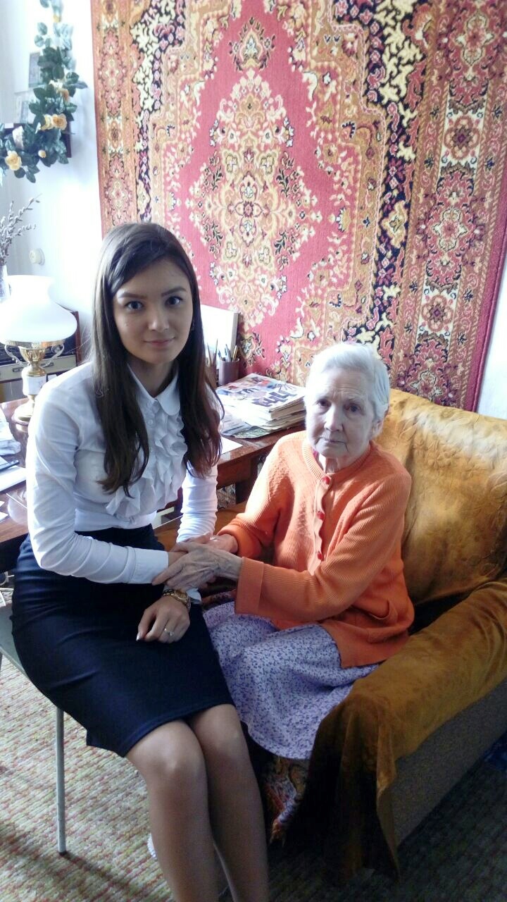 After war survivor of siege Sabirova Praskovia Pavlovna moved to Kyrgyzstan and stayed here. She met her husband here, war veteran who was wounded and lost his eye. They raised children together and lived a long and happy life.