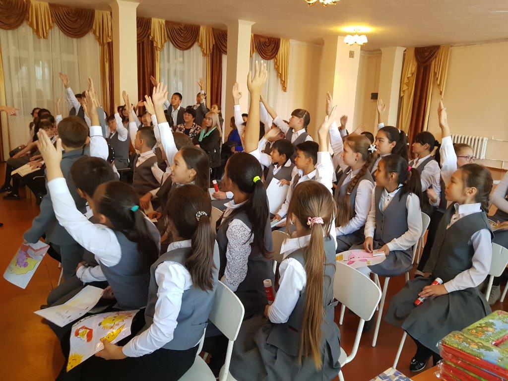 5 менен 6-класстын 60 окуучусу ата-энелери жана мугалимдери менен бирге баалуу байгелер ойнотулган викторинага активдүү катышышты.