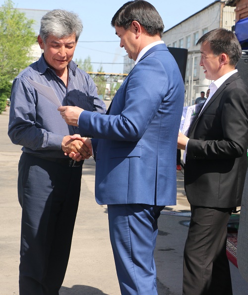 Председатель Правления ОАО “Айыл Банк” Мурат Акимов поблагодарил представителей ОсОО “Автомаш-Радиатор” за плодотворное сотрудничество и отметил, что 16 апреля 2017 г. Айыл Банком был организован I–форум и выставка-ярмарка «Ысык-Кол Агро -2017» в г.Каракол, в котором принял участие ОсОО “Автомаш-Радиатор” и вручил Генеральному этого предприятия Анатолию Черных Диплом участника выставки-ярмарки “Ысык-Кол Агро – 2017”.