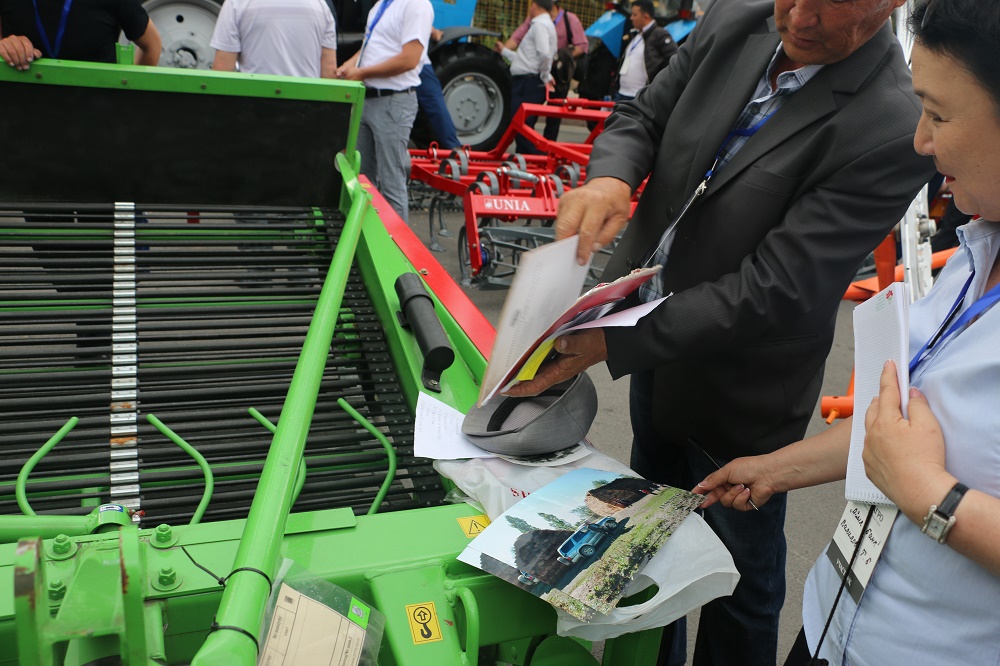 Он уже не первый раз принимает участие в Международной агропромышленной выставке «Айыл-Агро» и говорит, что нужно постоянно быть в курсе всех новых аграрных технологий и оборудования. Кроме того, он не боясь трудностей, не единожды берет в лизинг технику. По его словам, в 2012 году он взял в первый раз трактор, затем в 2014 вновь обратился в «Айыл Банк» за приобретением уже второго трактора в лизинг, а 10 апреля текущего года он приобрел и третий трактор.