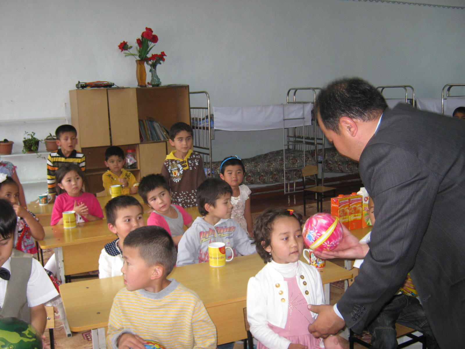 Токтогульский филиал тоже не остался в стороне и помог финансово 4 сиротам и поздравил детей и коллектив детского сада «Достук».