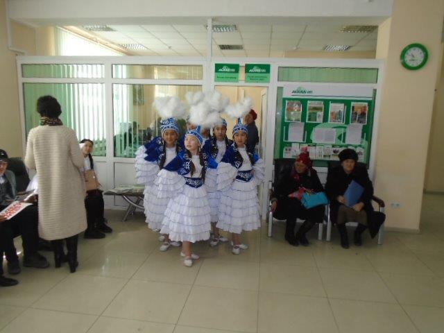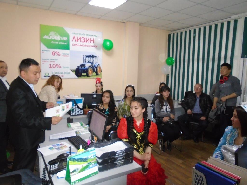 Данное мероприятие было организовано по инициативе средней школы им. Омур Токтосунова, которая находится в с. Доболу Нарынского района. Специально для этого дня учащиеся 6-8 классов данной школы подготовили танец в традиционной кыргызской национальной одежде и показали его сотрудникам и клиентам филиала. После этого сотрудники Нарынского филиала провели ознакомительные беседы о деятельности ОАО "Айыл Банк", а также организовали конкурс на знание банковской деятельности ( депозиты, виды переводов, платежные карточки, кредиты и т. д.). Отличившимся школьникам были вручены подарки в виде школьных принадлежностей ( пеналы, калькуляторы, наборы цветных карандашей и настольные календари Айыл Банка).