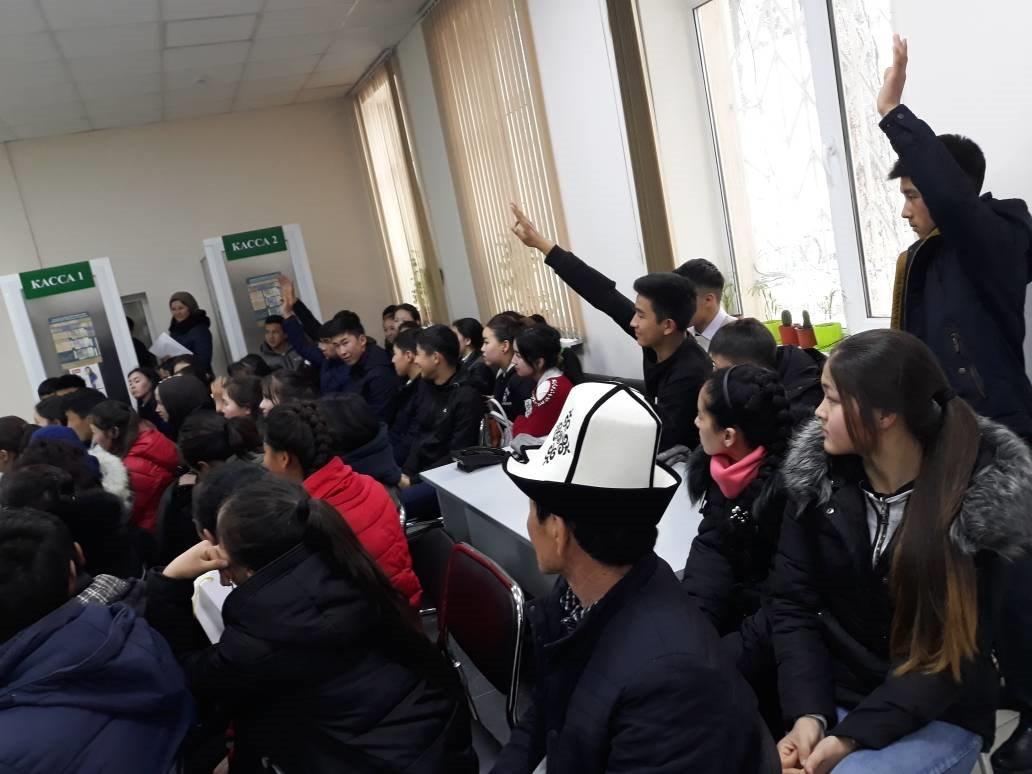В средней школе №27 «Бирдик», а также в средней школе №1 им. Ж.Боконбаева Шайданского айыл окмота были проведены открытые уроки для учеников 9-10-11 классов в количестве примерно 100 человек.