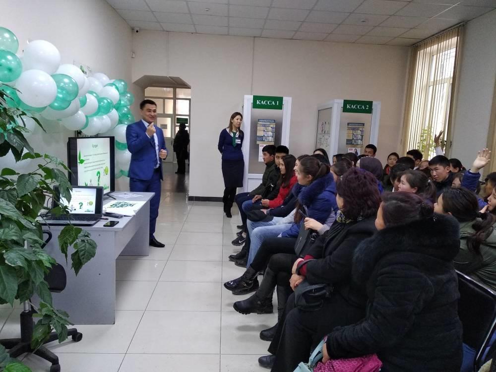 В «Дне открытых дверей» приняли участие 70 старшеклассников из средней школы им. Бейшеналы в селе Асылбаш, Новопавловской школы-гимназии №1 и Панфиловской средней школы и их учителей. В ходе мероприятия для школьников была проведен семинар по финансовой грамотности, а также в интерактивной форме доведена информация по работе Банка и финансового сектора в целом. По окончании мероприятия были вручены подарки победителям среди учеников по итогам вопросов и ответов и была проведена экскурсия по всем секторам Сокулукского филиала Банка.