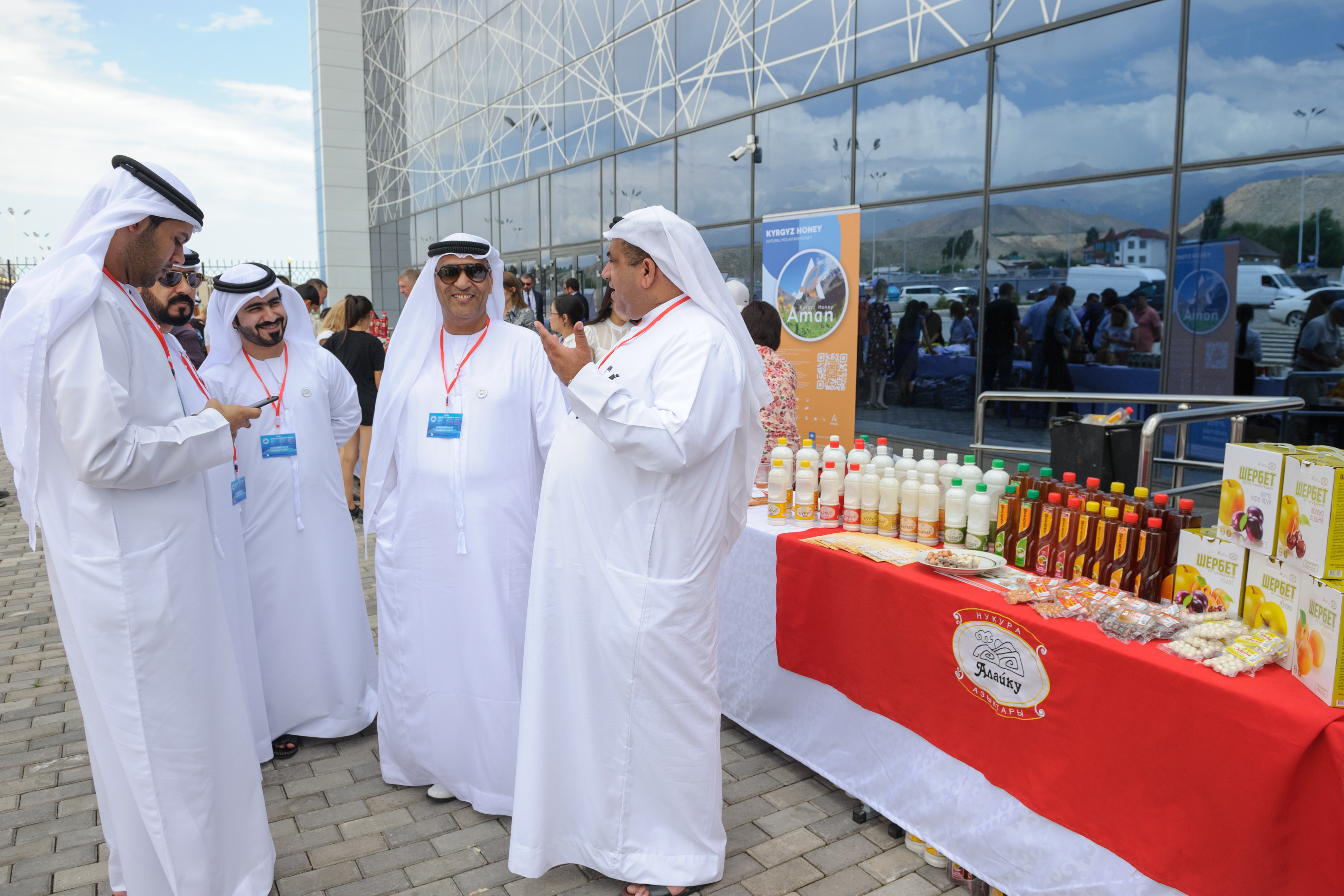 Гости из Объединенных Арабских Эмиратов, России, Казахстана, Узбекистана, России и Китая с большим интересом пробуют национальные напитки и закуски, а также оценивают качество текстильной и пластиковой продукции, произведенной в стране.