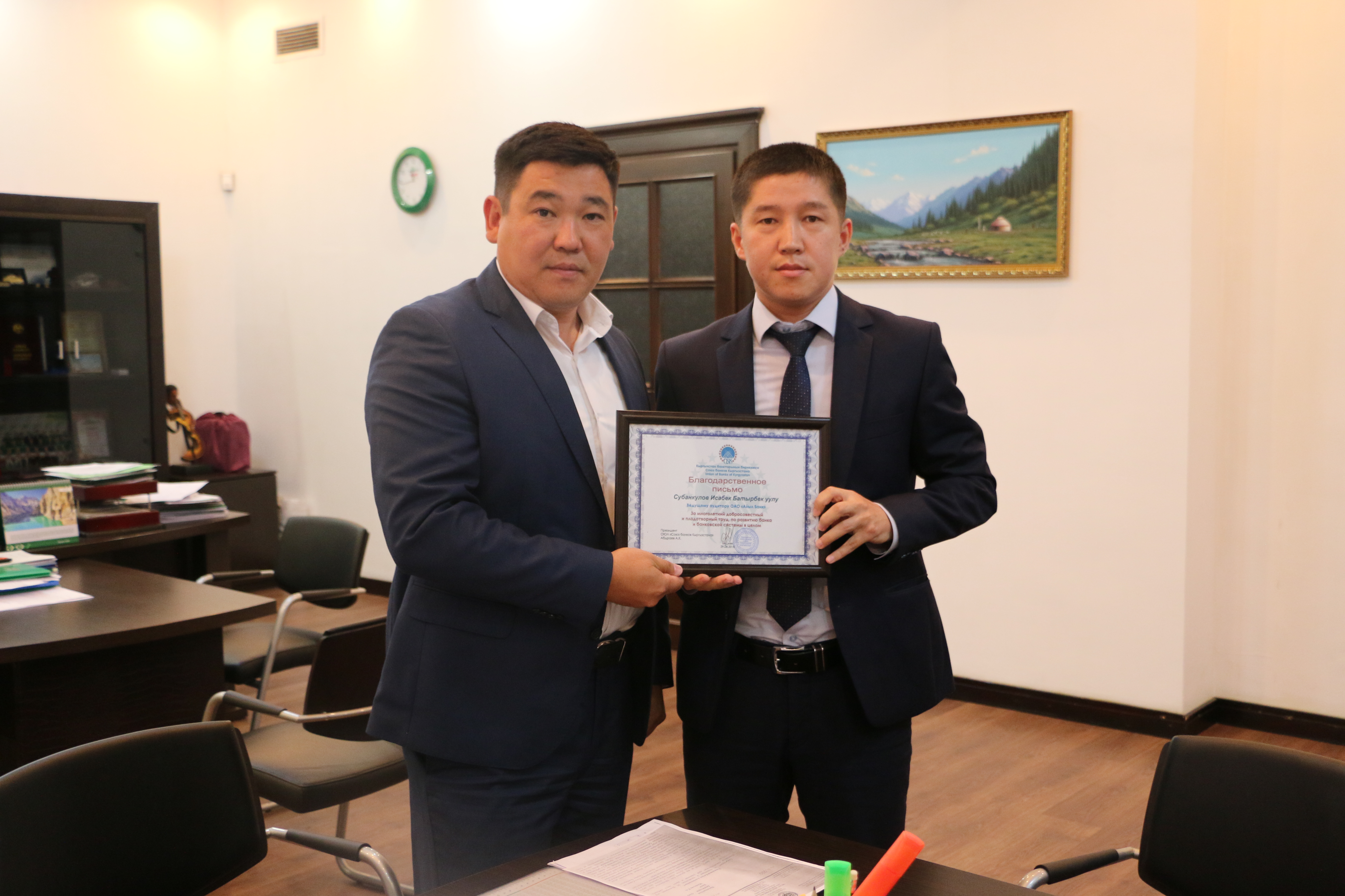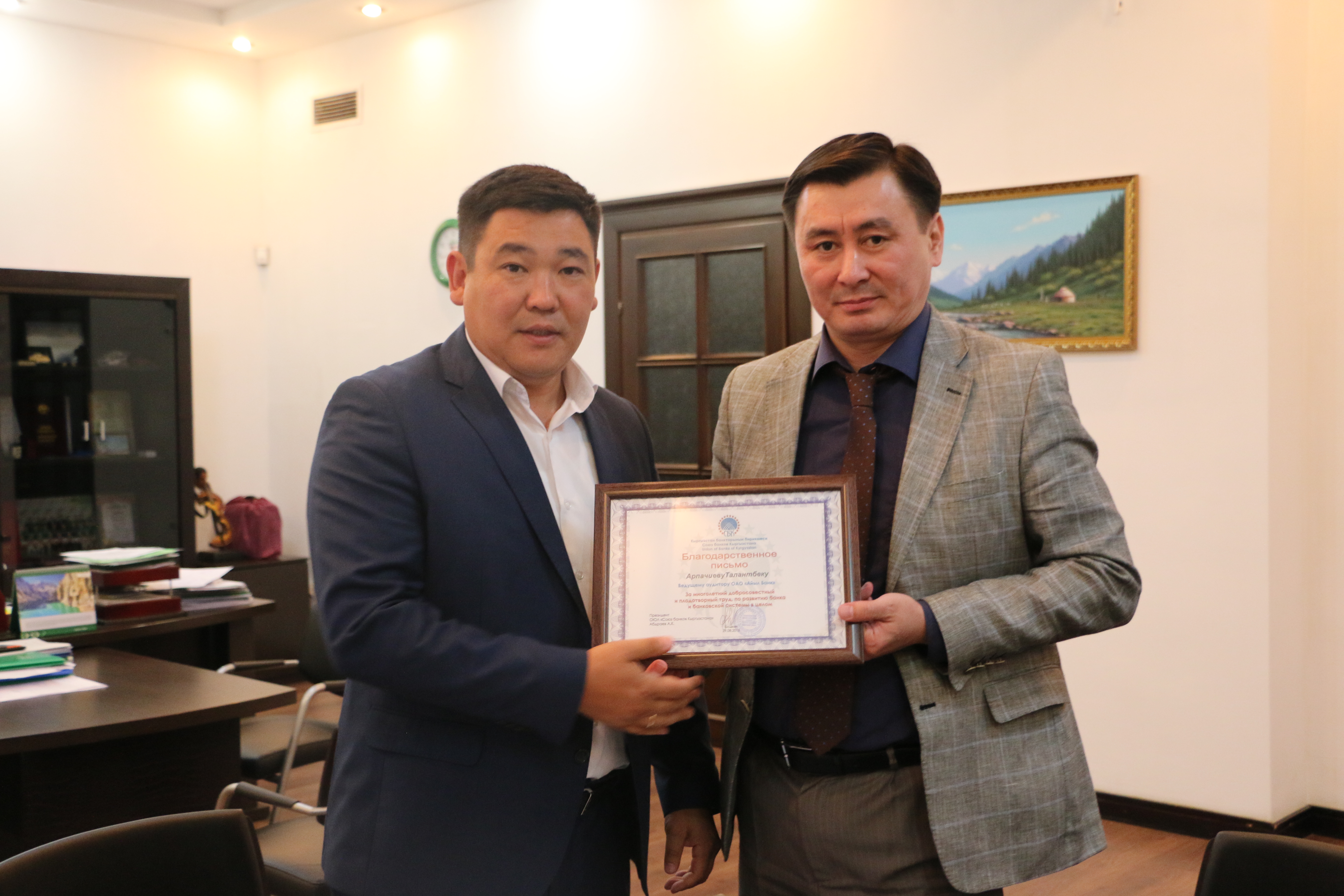 «За многолетний добросовестный и плодотворный труд, по развитию Банка и банковской системы в целом» - награждены Арпачиев Талантбек и Субанкулов Исабек.