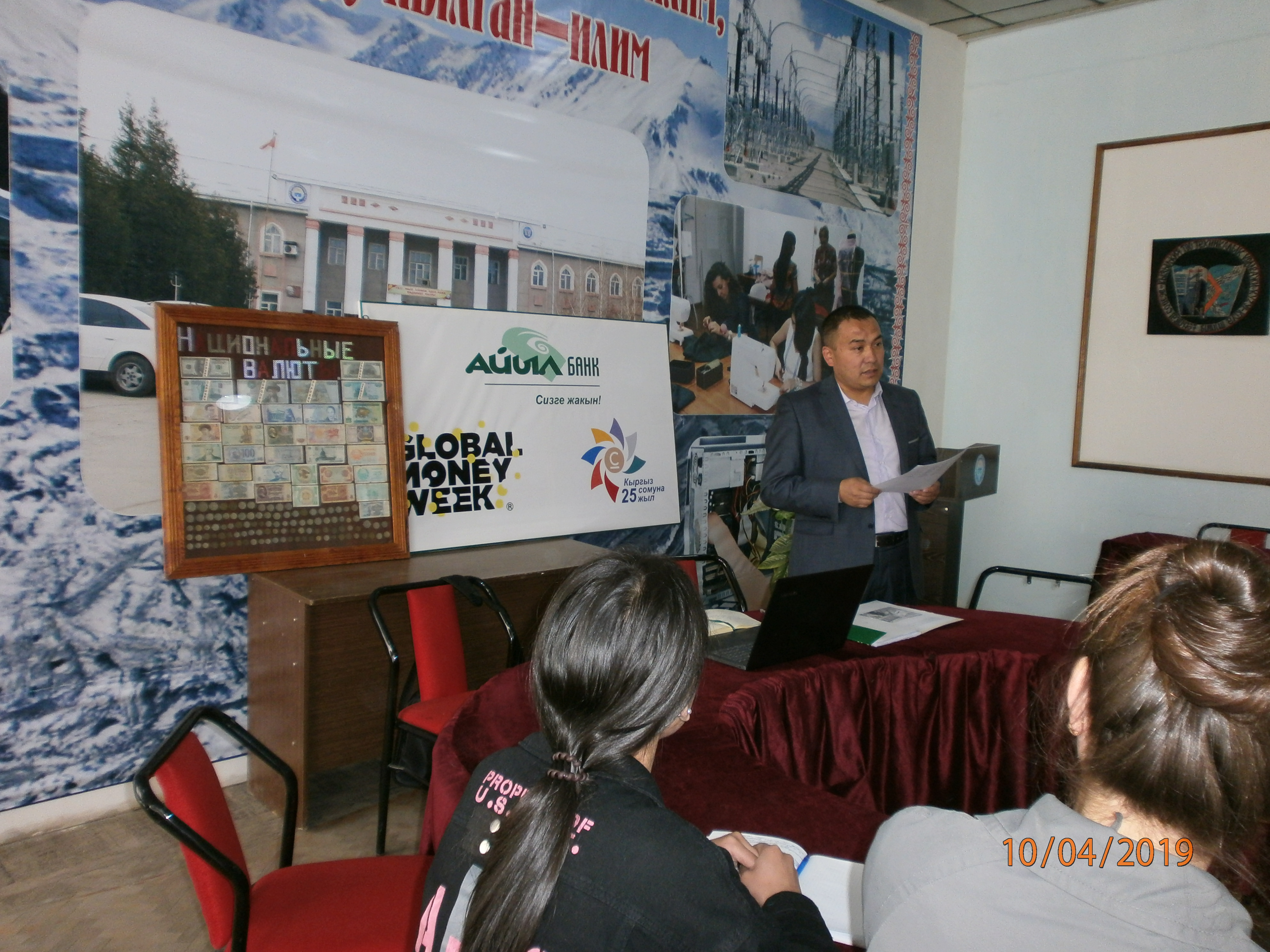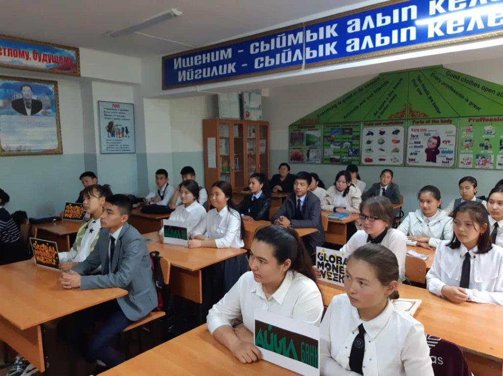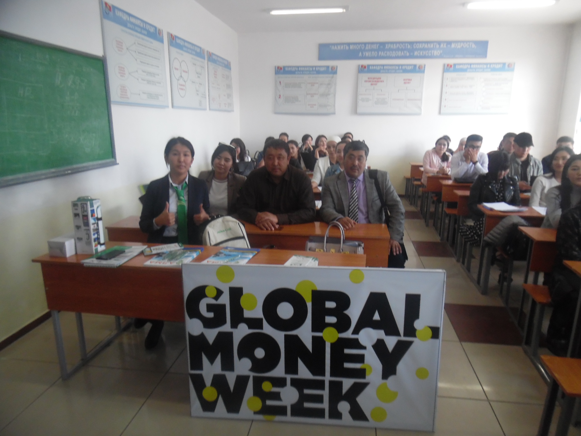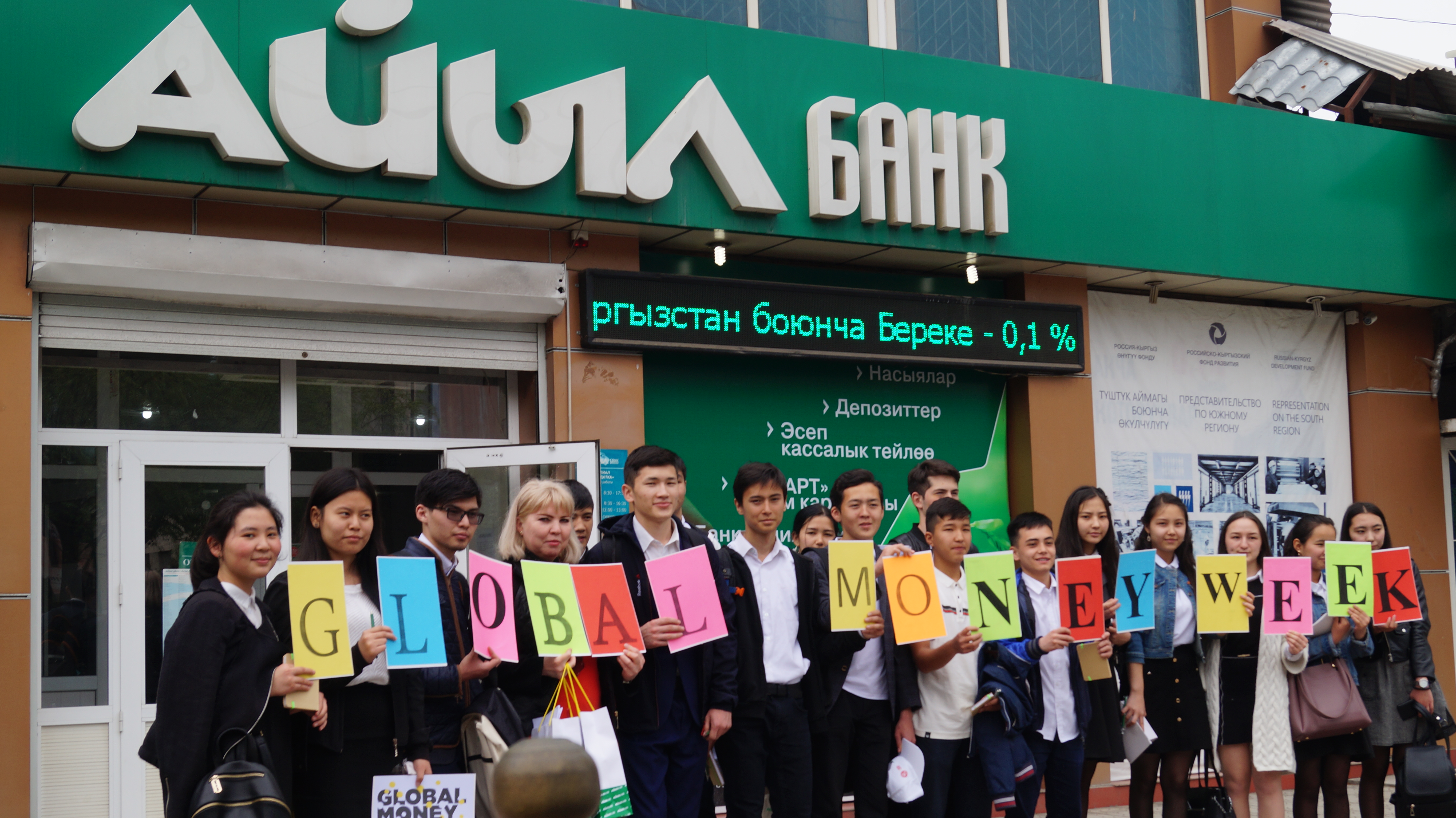 ОАО «Айыл Банк» принимает активное участие в данном проекте. В рамках Глобальной недели денег 23 филиала Банка организовали мероприятия для школьников и студентов 28 учебных заведений по всей республике.