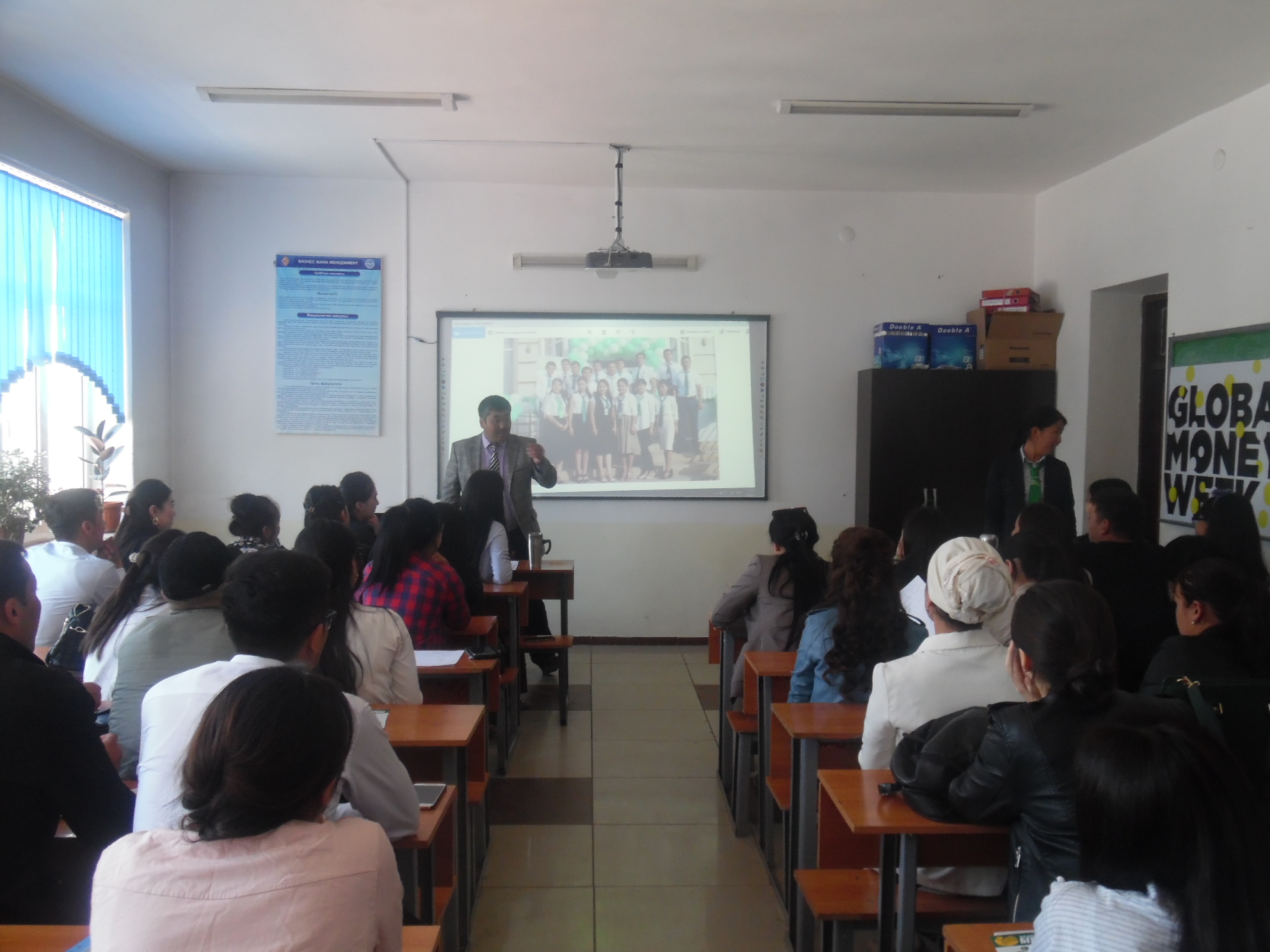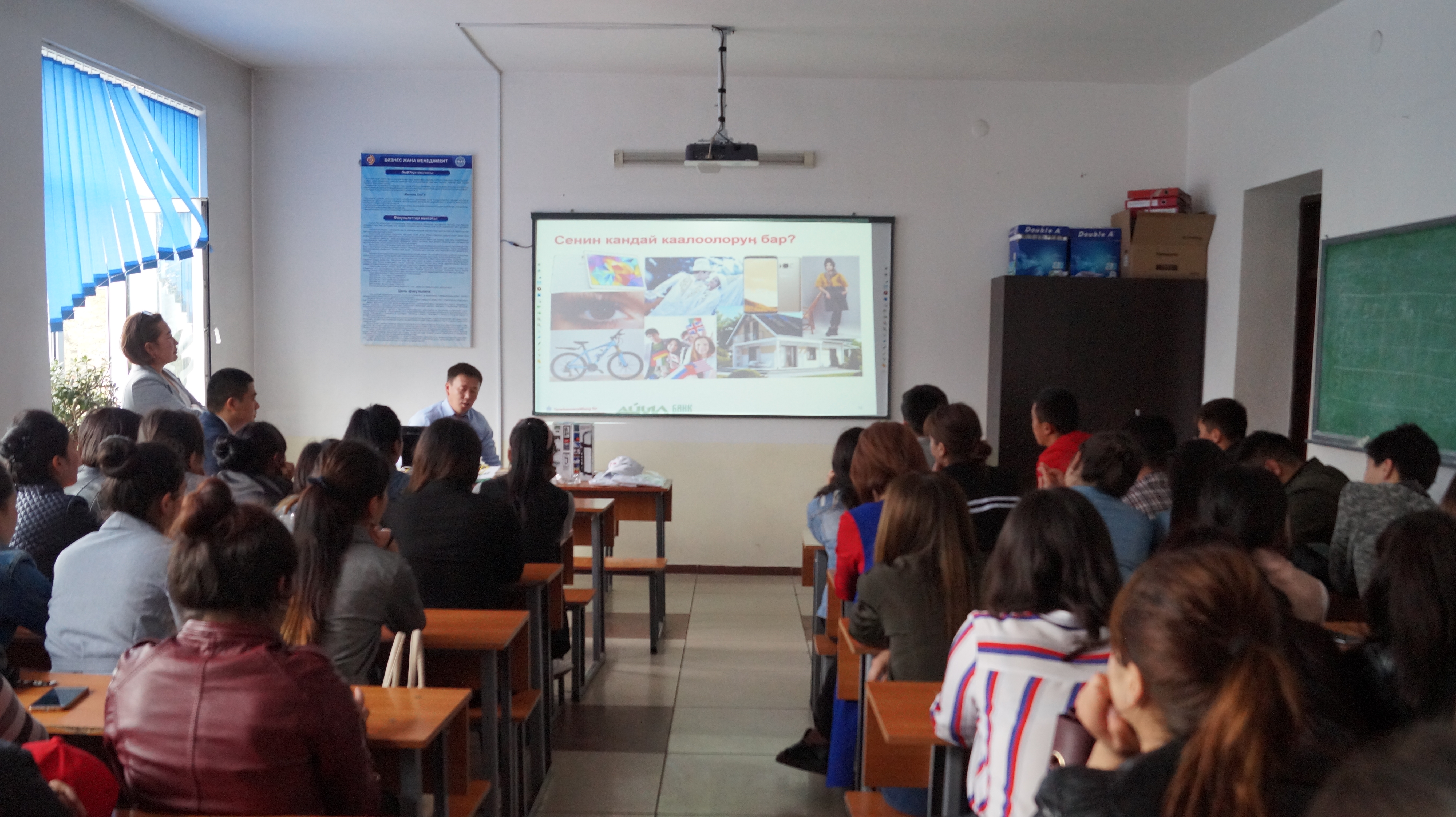 В этом году провел мероприятие для студентов "Кыргызского Международного Универсального Коледжа" (КМУК) в г.Шопоков. Управляющий Сокулукским филиалом Жаслан Алимханов рассказал студентам о личной истории успеха в банковской сфере. Сотрудники филиала рассказали об основах финансовой грамотности, правильное распределение и сбережение денег, а так же об основах банковской системы. Руководство колледжа в лице Генерального директора Рю Мин и директора Дили Сулаймановной выразили огромную благодарность представителям Сокулукского филиала Банка за безвозмездный вклад в образование детей., Представители Банка и учебного заведения договорились о прохождении учебно производственной практики студентами колледжа в Сокулукском филиале ОАО "Айыл Банк".