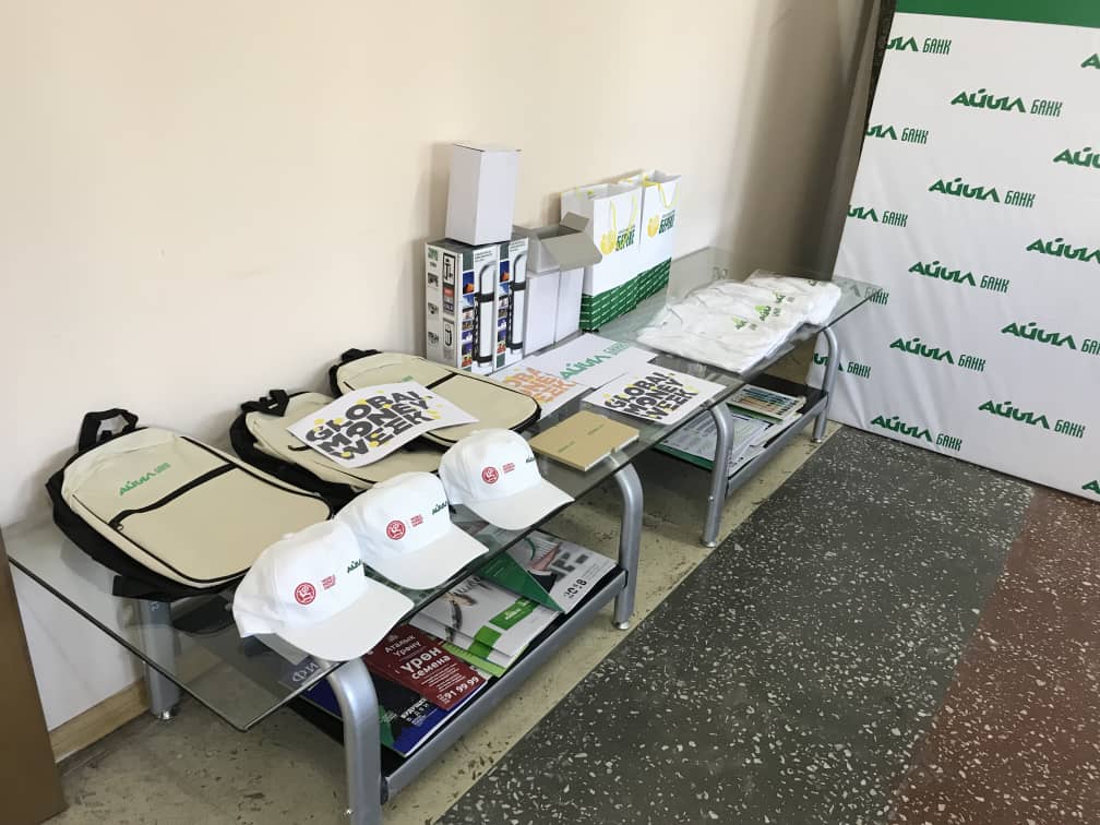 В этом году Токмокский филиал устроили серию мероприятий, в рамках Global Money Week, для учеников школ им. В. Маркова и им. С.Ибраимова. Управляющий Токмакским филиалом Дамирбек Сапаров вместе со специалистами провел тренинг на тему «Учись.Сберегай.Зарабатыва». Были прочитаны лекции на темы сбережений, платежных карт и депозитов. На перерыве сотрудниками Банка было устроено чаепитие для детей. После упровели дебаты между школами. Ребята показали свои презентации «Мой бизнес план».