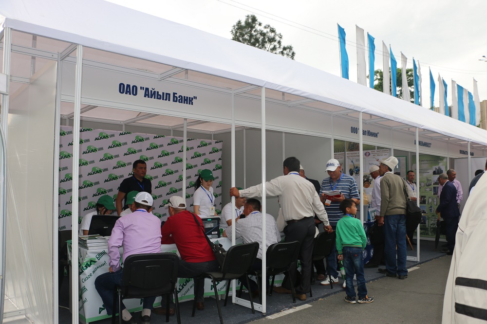 Көргөзмөгө “Айыл Банк ” лизинг продуктылары жөнүндө стенд даярдады. “Айыл Банктын” стендинде Урмат Акматов башында турган Лизинг бөлүмүнүн кызматкерлери лизингдин түрлөрү жана пайыздык чендери жөнүндө, күрөөнүн өзгөчөлүктөрү жана лизингдин негизинде насыяны алуунун шарттары жөнүндө толук маалыматты беришти. Мындан тышкары республиканын фермерлери көргөзмөнүн өзүндө айыл чарба техникасына насыяларды атайын жеңилдетилген шарттарында алууга мүмкүнчүлүк алышты.